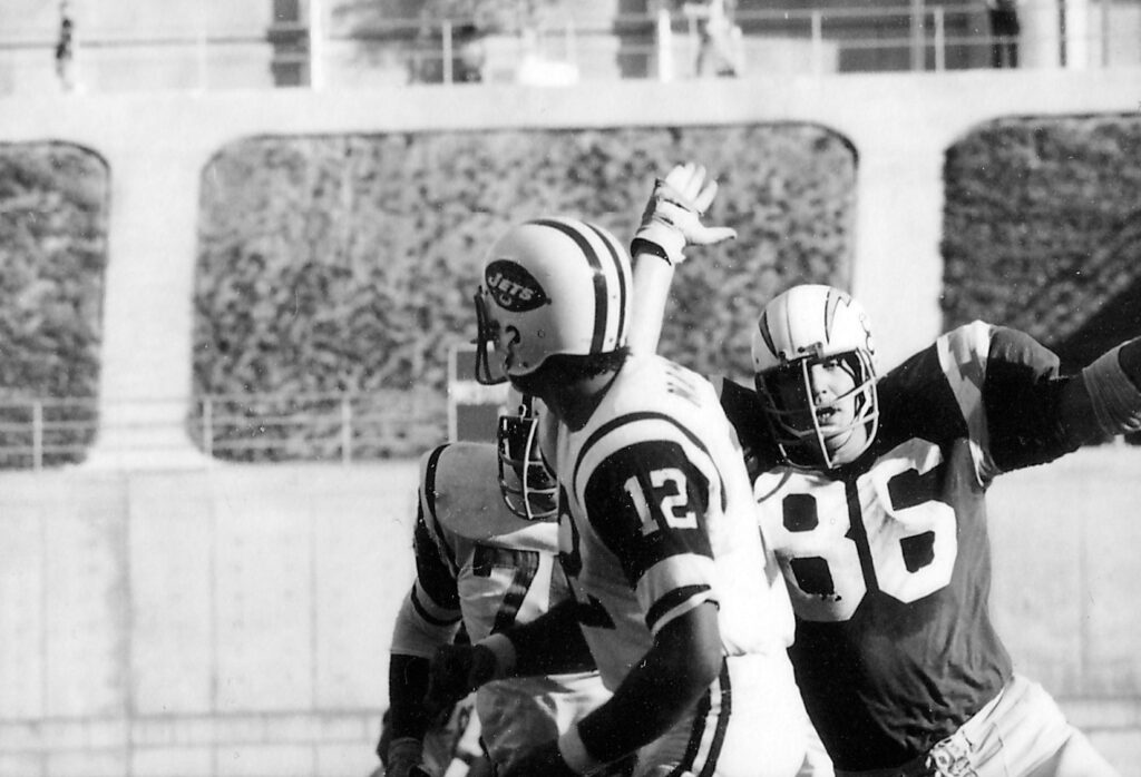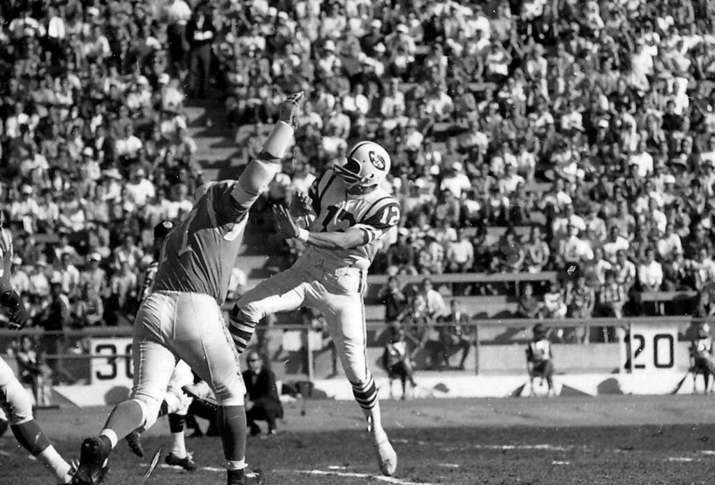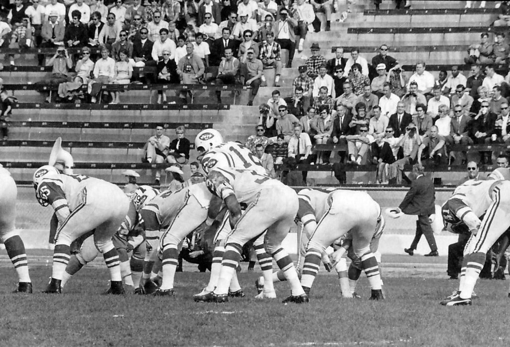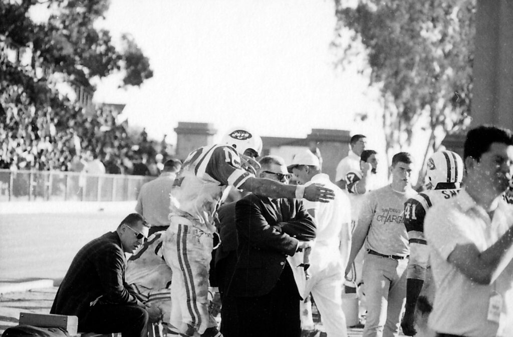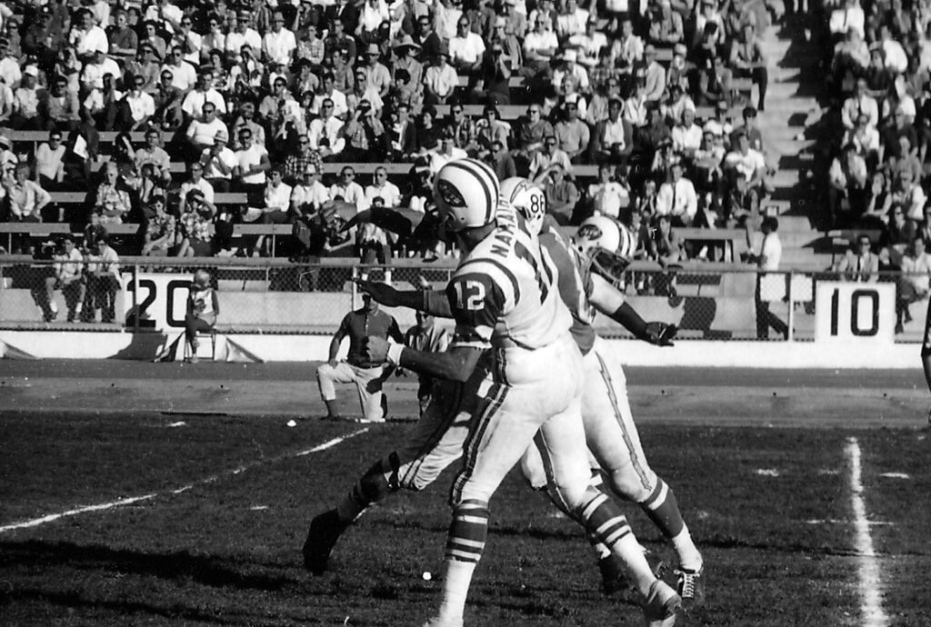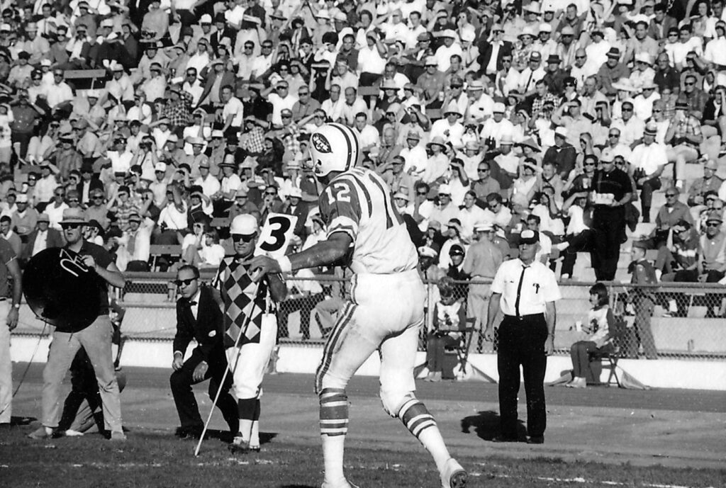 Finally, two shots from the 1967 game, at the new San Diego Stadium. Namath threw for 343 yards and four touchdowns as the Jets won handily, 42-31